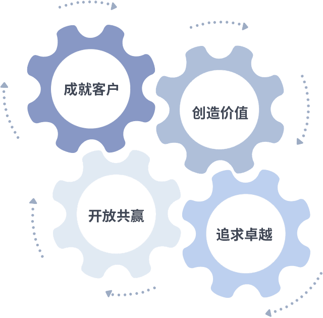 成就客户是一切决策的出发点,,,,创造价值是衡量所有工作的标准,,,追求卓越是w66国际·利来做事做人的态度,,,,开放共赢是w66国际·利来的格局也是最终的结果。。。。价值观的齿轮环环相扣,,推动着组织里的每个人不断向前。。